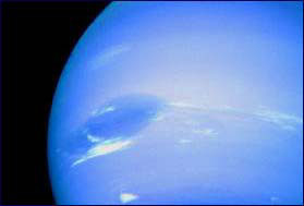 Neptune Rising: Giant storms in the atmosphere of Neptune are visible in this August, 1989 image from Voyager 2. Read more about humanity's exploration of our solar system in Andrew Chaikin's special report. Credit: NASA |